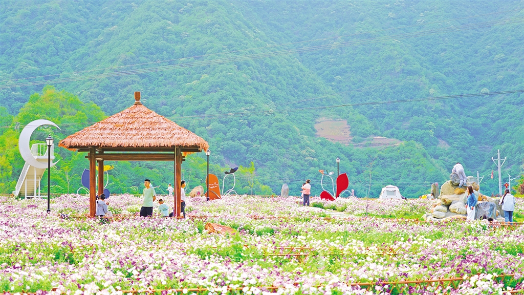 5月的白河,青山如黛,綠意蓬勃。乘車沿著縣城二級路走進位于構朳鎮(zhèn)涼水村的百福園花園,眼前驟然鋪開一幅色彩斑斕的畫卷。牽牛花如彩色小喇叭般昂首,小雛菊似亭亭玉立舞者般輕盈,格;ㄈ缪┯蛳勺影愀蓛羲匮牛悍紶幤G間,將鄉(xiāng)村田園的質樸與浪漫詮釋淋漓盡致。草坪野餐、放風箏,露天營地等娛樂項目吸引了眾多游客紛至沓來。 (通訊員 周驍)