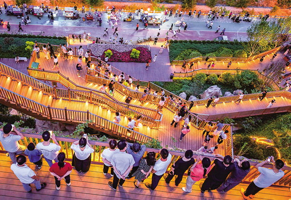 據(jù)了解,該項目通過錨桿加固、格構(gòu)支護等措施,有效解決了安全隱患問題。同時,進行系統(tǒng)性生態(tài)修復(fù),新增綠地面積超1.2萬平方米,構(gòu)建起“四季有花、層次錯落”的立體植被體系。還新增景觀塑石、登山步道、觀景平臺等設(shè)施,并在山體步道設(shè)置龍舟文化主題觀景點,形成“自然+人文”聯(lián)動的立體游覽路線,實現(xiàn)了“生態(tài)修復(fù)+文化賦能+休閑服務(wù)”的復(fù)合發(fā)展模式。開放首日,通行游客超萬人次。