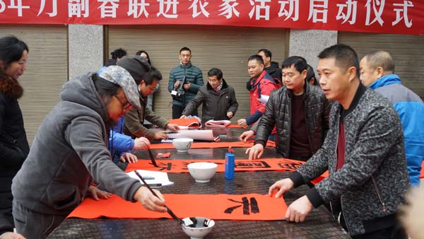 安康新聞網(wǎng)訊(通訊員 惠星)1月23日,漢濱區(qū)2018年“萬副春聯(lián)進(jìn)農(nóng)家”活動(dòng)在漢濱區(qū)新城辦金川社區(qū)啟動(dòng),來自漢濱區(qū)文化館、區(qū)美術(shù)家協(xié)會(huì)、區(qū)書法家協(xié)會(huì)的書畫家……