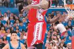 球員在超級企鵝籃球名人賽比賽中。 9月10日晚,上海東方體育中心。在現(xiàn)場1.2萬余名觀眾的吶喊中……
