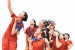 圖為中國女排球員與大冠軍杯獎杯合影。