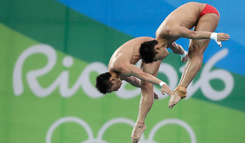當(dāng)?shù)貢r(shí)間8月8日,在里約奧運(yùn)會男子雙人十米臺決賽中,中國組合林躍/陳艾森一路領(lǐng)先,以巨大優(yōu)勢奪冠,中國隊(duì)也實(shí)現(xiàn)該項(xiàng)目四連冠。中新網(wǎng)記者 杜洋 攝……