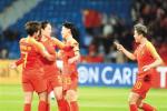 中國隊球員唐佳麗(左二)進球后和隊友慶祝。