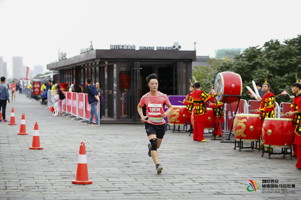 人民網(wǎng)北京9月11日電 2017西安城墻國(guó)際馬拉松賽于昨日上午8:00鳴槍開(kāi)賽。作為世界唯一將賽道設(shè)置在完整城墻之上的馬拉松賽事,城墻馬自舉辦以來(lái)就備受廣大跑友的關(guān)注。今年亦是如此,來(lái)自美國(guó)、澳大利亞、法國(guó)、日本等13個(gè)國(guó)家和地區(qū)的3000名運(yùn)動(dòng)員齊聚古城墻,共同見(jiàn)證了這場(chǎng)歷史文化與體育競(jìng)技相融合的跑步盛典。
