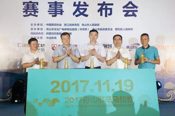 人民網(wǎng)北京9月20日電 2017舟山群島馬拉松將于11月19日上午8:00在舟山開跑。9月19日組委會舉辦賽事發(fā)布會,就賽事舉辦時間、規(guī)模、比賽項目及賽事提升、亮點等內(nèi)容進行發(fā)布。舟山市人民政府副秘書長苗成武、舟山市文化廣電新聞出版局(體育局)局長陸深海、中共舟山市普陀區(qū)委常委、宣傳部部長李升、舟山市普陀區(qū)人民政府副區(qū)長楊海濱等出席發(fā)布會并共同啟動賽事。
