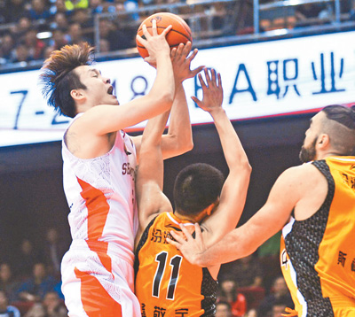 10月29日,山東隊球員丁彥雨航(左一)在比賽中上籃。cyM安康新聞網(wǎng)