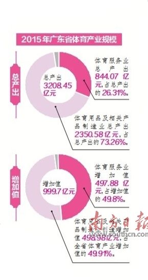 據(jù)最新統(tǒng)計數(shù)據(jù)顯示,2015年廣東省體育產(chǎn)業(yè)總產(chǎn)出3208.45億元,增加值999.7億元,占我省2015年GDP的1.37%,總產(chǎn)出約占全國體育產(chǎn)業(yè)的18.19%。其中體育用品及相關(guān)產(chǎn)品制造業(yè)在我省體育產(chǎn)業(yè)總產(chǎn)出與增加值中占比最高。體彩銷量穩(wěn)步提高,近五年來共銷售719.37億元,籌集公益金178.26億元,居全國前列。FjE安康新聞網(wǎng)