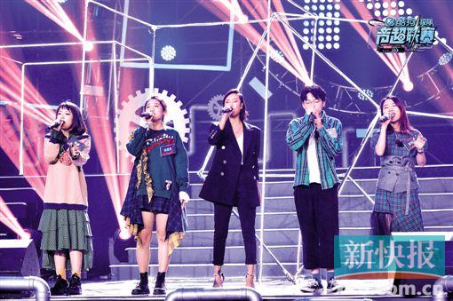 當(dāng)晚的比賽,就像一場(chǎng)混搭版的演唱會(huì)。一開(kāi)場(chǎng),星海音樂(lè)學(xué)院、浙江傳媒學(xué)院、四川傳媒學(xué)院、中國(guó)音樂(lè)學(xué)院、重慶大學(xué)五強(qiáng)戰(zhàn)隊(duì)就合體演唱主題曲《冒險(xiǎn)時(shí)代》拉開(kāi)決賽序幕,之后五強(qiáng)戰(zhàn)隊(duì)分別帶來(lái)了自己的表演,并向?qū)煛⑷藲、媒體、制作人四大通道發(fā)起挑戰(zhàn)。