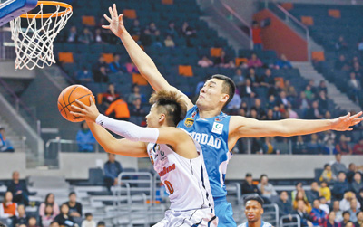 1月23日,青島隊(duì)球員蘇偉(后)在比賽中封蓋對(duì)手上籃。當(dāng)日,在2017—2018賽季中國男子籃球職業(yè)聯(lián)賽(CBA)第三十輪比賽中,廣東隊(duì)主場以119∶104戰(zhàn)勝青島隊(duì)。當(dāng)日其他比賽結(jié)果為:新疆125∶108同曦,山東126∶100四川,江蘇110∶92八一,北京108∶92吉林。X7X安康新聞網(wǎng)