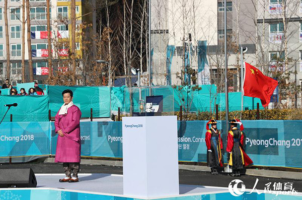 2018平昌冬奧會開幕在即中國代表團(tuán)舉行升旗儀式