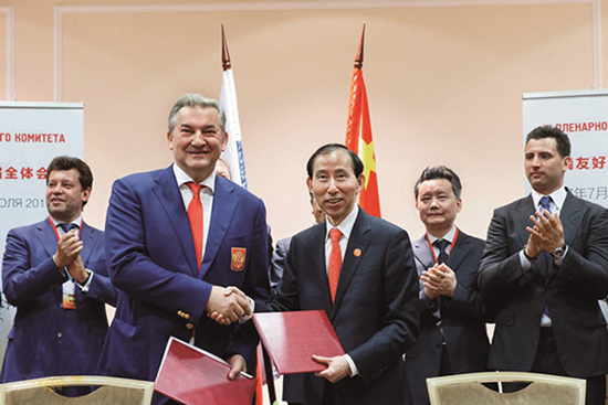 “絲路杯”超級(jí)冰球聯(lián)賽合作協(xié)議簽署現(xiàn)場