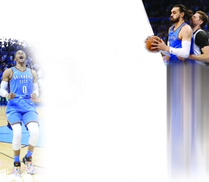 擁有三巨頭的雷霆,依靠威少的個人發(fā)揮拿下比賽。大加索爾(右)此役復(fù)出與亞當(dāng)斯對位。