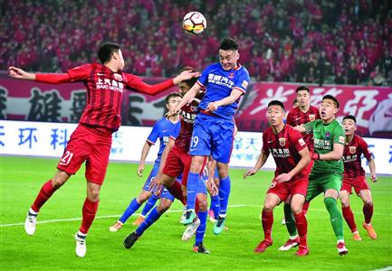 上海上港對(duì)陣重慶斯威拼搶積極,防守堅(jiān)固。 /晨報(bào)記者 顧力華