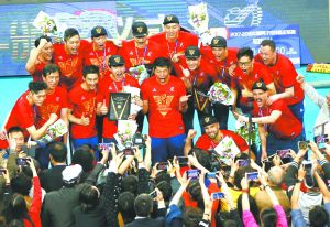 本報(bào)上海4月24日電(記者 周圓 實(shí)習(xí)記者 周陽)“我們有一顆冠軍的心!”上海金色年華男排奪得聯(lián)賽第14冠后,隊(duì)長詹國俊捧起了冠軍獎(jiǎng)杯后自豪地說。