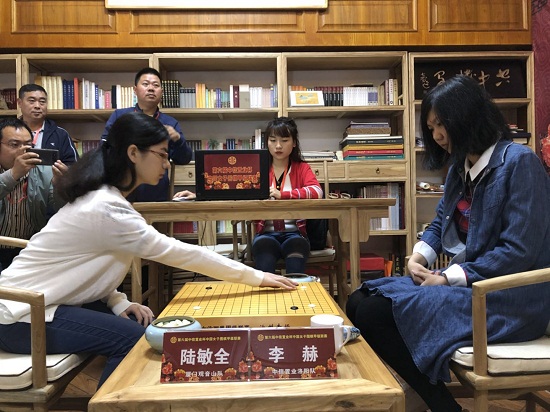 前三輪比賽過后,洛陽隊和廈門隊的成績都不太理想,分別積以3分和5分排名倒數(shù)第二和倒數(shù)第三位。因此,本輪比賽對于雙方來講都是非常重要的爭分之戰(zhàn),主將對決李赫與陸敏全兩人下的十分謹慎,棋局進程十分慢。李赫在開局右下角獲利巨大,取得優(yōu)勢后出現(xiàn)了誤算,陸敏全憑借左下角一戰(zhàn)獲利,將局勢扳回不少,但李赫仍有優(yōu)勢。眼見局勢變得有些細微,雙方進入收官階段,這時棋局卻突發(fā)意外,李赫由于按鐘時手滑失誤,在讀秒最后關(guān)頭超時。經(jīng)雙方協(xié)調(diào),陸敏全不同意繼續(xù)對弈,按規(guī)則李赫被判超時負,洛陽隊憾失3分。