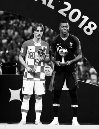 世界杯最佳球員莫德里奇(左)和最佳新人姆巴佩在頒獎(jiǎng)儀式上。(新華社發(fā))