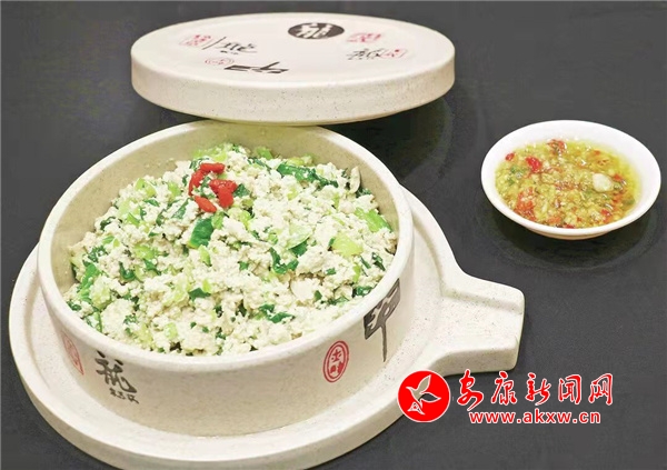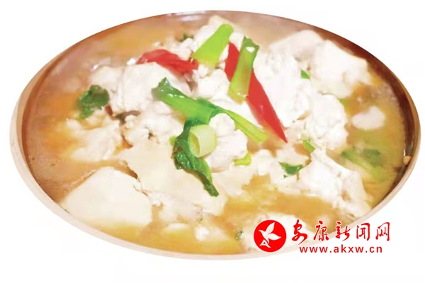 以石磨豆腐、小青菜為主要食材,制作時(shí)首先把豆腐捏碎,然后把青菜切成碎,在豆腐里面加入一個(gè)雞蛋,攪拌均勻。起鍋燒豬油下入蒜末炒香,倒入青菜、豆腐、炒熱,然后調(diào)味,在配上一小碟提前準(zhǔn)備好的大蒜辣椒,吃著既有豆腐的醇香,又有青菜的清淡,營養(yǎng)價(jià)值也很較高。