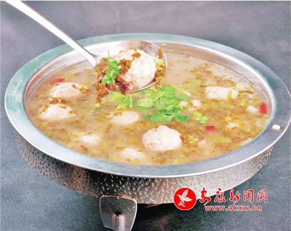 選用肥三瘦七的五花肉剁成肉餡兒,加入馬蹄碎、香菇碎、蔥姜末、胡椒粉、 花椒面、料酒調(diào)味,打一個(gè)雞蛋到入其內(nèi),順著一個(gè)方向攪拌上勁。然后起鍋燒油,下蔥姜蒜、干辣椒、把切好的酸菜倒進(jìn)去炒香,加入適量的清水燒開。再一次把肉餡兒擠成直徑為3厘米的丸子下入鍋中,小火加熱,等丸子都浮起來的時(shí)候,撒上蔥花,裝盤即可。酸菜獅子頭通過多到工序,讓酸菜融入丸子里,肉鮮味香,酸爽開胃,老少皆宜。