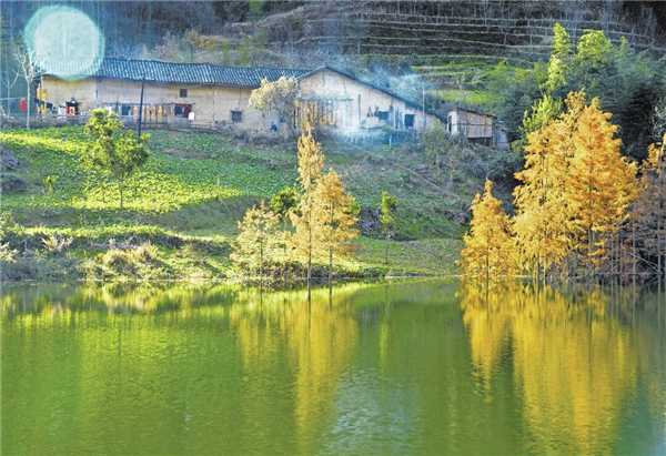在水中,一條油潤(rùn)潤(rùn)的小路,融匯了大地的物語(yǔ),春雨的澆注,還有輕輕觸碰就會(huì)變幻的神秘。道路的兩邊,是造型夸張要滴出翠來(lái)的植物,阻擋了行人的腳步,牽絆了路人的衣服,會(huì)給那些衣服沾染上艷麗的花粉,在深夜里都會(huì)散發(fā)出一股醉人的清氣,仿佛有什么該想而未想,心里蘊(yùn)滿了不能為人道皎潔的白月光。沿著那條路,就是在水中宛若樓臺(tái)亭閣一般的房屋,黑瓦房、白墻壁,杏花、桃花、茉莉花爭(zhēng)相簇?fù),房子便如置身其中的嬰兒了。還有小奶狗在屋前悠閑地打盹,太陽(yáng)直射下來(lái),貓也走來(lái)湊湊熱鬧,貓的眼睛碧藍(lán)澄澈,仿佛天使之瞳,總是帶著先知或者驚異審視的表情……而與此相對(duì)的,就是炊煙了,唯有炊煙將我們拉回世俗庸常之中,飯菜的香氣,去年果木熏的臘肉,農(nóng)家自己釀的一碗包谷燒,啊,真想喝點(diǎn)小酒,酒的美妙不在于入口的辛辣,而在于微醺之時(shí),那種難以控制的快樂(lè)!古來(lái)圣賢皆寂寞,唯有飲者留其名,明天的事,明天再說(shuō)吧!
