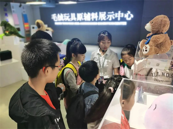 第三站為原輔料研發(fā)生產基地(安貝斯孵化園),孩子可以了解到毛絨玩具產業(yè)鏈的總體知識,并對廠房內部進行參觀;第四站為玩具研發(fā)生產基地(恒安玩具工廠),可以依次參觀繡花車間、車縫車間、手縫車間、質檢車間,了解毛絨玩具的工藝與生產過程;第四站是毛絨玩具五大中心,在前三站對毛絨玩具了解的基礎上,對毛絨玩具進行總結,之后可以體驗抓娃娃機、扭蛋機、購買毛絨玩具。