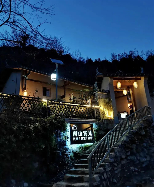 南山云見民宿共有11個陜南民居,集茶舍、住宿、餐廳、書院、美術館為一體,穿梭于鳳凰山中的康養(yǎng)文化健身步道,宛如一條絲線,串聯了大南溝的龍?zhí)、龍隱谷、凈春山、講經臺、逍遙石、明月寺、南山云見民宿等景點。