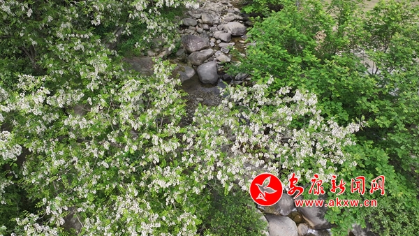 槐林漾瓊花 芬芳醉萬家。眼下正值槐花盛開的季節(jié),漢陰鳳凰山國家森林公園內(nèi)上千畝的槐花如云似錦、沁人心脾,潔白的槐花將山巒裝點(diǎn)得如詩如畫。