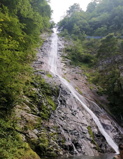 *飛渡峽內(nèi)有“六瀑五潭”各顯奇異,其中飛流瀑?gòu)奶於拢h逸瀟灑,游人贊口不絕。YME安康新聞網(wǎng)