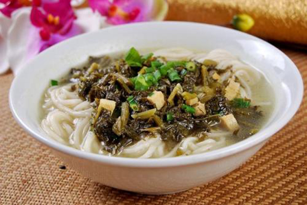 我的家鄉(xiāng)在山水環(huán)繞、滿眼皆綠的秦巴山區(qū)小城——中華太極城——旬陽縣。好山好水孕育出了眾多的美味食物,其中最具代表的要數(shù)“酸菜面”,也叫“漿水面”,它當(dāng)之無愧的坐上了頭把交椅。好吃的酸菜面,自然要有泡的夠酸夠脆的酸菜和筋道的兩摻面,兩摻面是由豌豆面和小麥面和制而成。泡了兩三日的酸菜與手工搟好的兩摻面搭配在一起,一碗熱氣騰騰的酸菜面就盛到你的面前,若是再加上自家做的大蒜辣子,真是讓人胃口大開、大口朵頤、精神倍爽。特別是在夏天,或是在酒醉后的第一餐,嚼起清脆的酸菜、筋道的兩摻面、清香的大蒜辣子,頓時讓人滿口生香、酣暢淋漓、回味無窮,就會忍不住要多吃幾口。多種味道混合起來產(chǎn)生奇異的味覺沖擊,酸的爽快,辣的夠味。最后,再喝上幾口熱氣騰騰的面湯,直吃得要撐破肚皮才罷休。