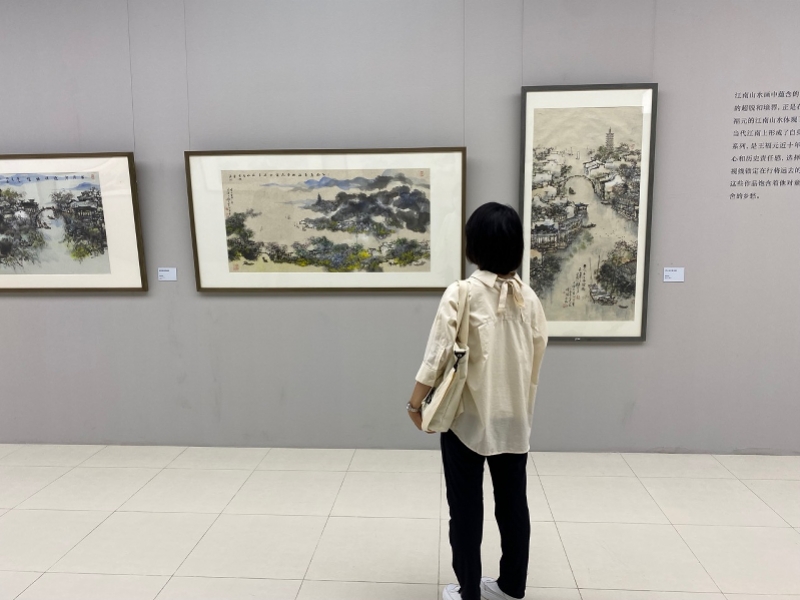 中國美術家協(xié)會理論委員會主任尚輝則在展覽前言中寫道,王福元“以畢業(yè)創(chuàng)作《春雷震人寰》而一舉成名,從人物畫而轉攻山水畫,并以家鄉(xiāng)無錫風景為其山水的創(chuàng)作題材。作為當代江南山水的重要的代表人物之一,其創(chuàng)作表現(xiàn)出傳統(tǒng)筆墨與現(xiàn)代色彩的結合,并找尋到帶有江南印象的個性圖式。他通過江南山水不僅傳達了對故鄉(xiāng)的情愫,而且其具有創(chuàng)新性的筆墨語言和個性圖式更拓展了江南山水畫的現(xiàn)代性表現(xiàn)。”