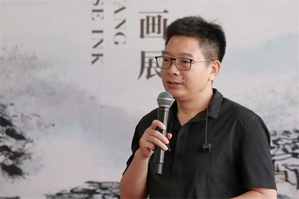 于洋在致辭中表示,“王福元先生的作品之所以被觀者所認同,被畫壇所稱道,正是源于他對藝術(shù)的執(zhí)著態(tài)度,及其作品顯現(xiàn)出的鮮明藝術(shù)特色和濃郁的個人風格。其作品的個人特色主要體現(xiàn)在三個方面:其一,王福元先生長于色彩,并獨創(chuàng)‘幻彩’畫法。他不囿于傳統(tǒng)山水畫色彩的固有程式,其作品色彩鮮活、生動清透,筆下的江南山水玲瓏剔透、氤氳朦朧,同時色彩絢爛,極具觀賞性,作品色彩張力和視覺沖擊力強;其二,王福元先生的山水畫具有綜合跨界性,借鑒了繪畫領(lǐng)域外其他藝術(shù)門類的風格。王福元先生長于音律,能演奏笛、蕭等樂器,因此他的山水畫有以音律入畫、注重意蘊表達的特點,具有很強的節(jié)奏感和律動感。其三,他的山水畫具有很強的筆墨、色彩、圖式的個人特點。與北方山水不同,江南山水因其獨特的地域性,具有一派平遠的景象。他把個人思考和表現(xiàn)風格化育在清透的江南文人水鄉(xiāng)氣象之中,在承續(xù)傳統(tǒng)文脈的同時也顯現(xiàn)了地域文化性格,這是十分可貴的。正因為這三個方面的特點,我覺得王福元先生筆下的江南山水既是南派山水畫自古以來變遷中的一種發(fā)展,也是他通過自身的綜合思考和知行合一的積淀所衍生出來的個人風格。”。