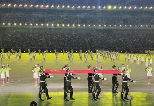隨后,五星紅旗冉冉升起,6萬人齊聲唱國歌。“起來,不愿做奴隸的人們,把我們的血肉,筑成我們新的長城……”當(dāng)這首從小根植在我們腦海中的歌曲在奧體中心上空飄揚,場面十分壯觀,這一刻我不禁熱淚盈眶!第一次參加如此壯觀的升旗儀式,第一次近距離參加如此龐大的體育盛會,內(nèi)心頃刻間升騰起無比強大的民族自豪感,真切感受到祖國的繁榮強大、團(tuán)結(jié)富強,越發(fā)覺得我們能夠生在長在偉大的中國,是多么自豪、多么驕傲!能夠生活在這個繁榮昌盛的時代,是多么幸運、多么幸福!