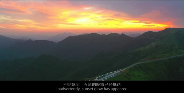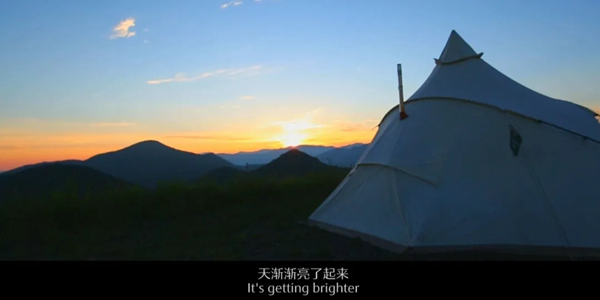天漸漸亮了起來,越過重重山脈的陽(yáng)光 映紅了云層,照亮了山谷,催醒了沉睡的動(dòng)物,一頂頂帳篷像隆起的蘑菇 生⻓在云端之上。