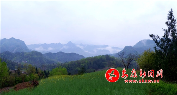 那些嫩綠、芽綠、粉綠、蒼綠、翠綠……渾然一體的漸變,層次分明的流動(dòng),是時(shí)光的穿梭,是歲月的更迭,是人間四月天別樣的溫柔。亂云飛渡,雨絲風(fēng)片,起伏丘壑,流嵐如青鳥(niǎo)的羽翼,輕輕一掃,山河便幻化成瑤臺(tái)仙境。