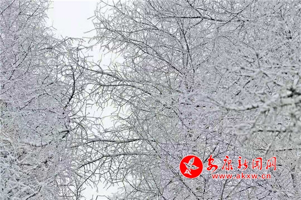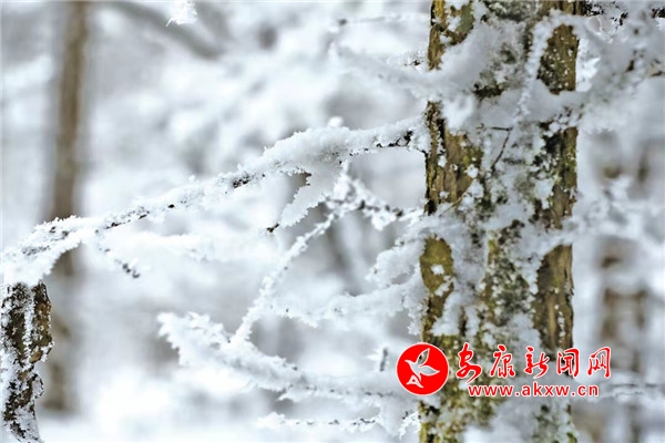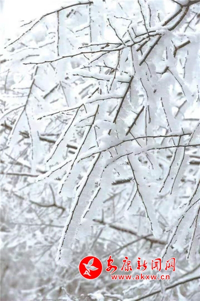在青松的針葉尖上,在柔韌的枝條末梢,冰凌、霧凇、雪柳、樹掛……鋪天蓋地,肆意飛揚(yáng)。憑欄遠(yuǎn)眺,萬千輕羽蔓延鋪陳,寒山枯色被這天地間的精靈喚醒?丈讲灰娙,但聞雪落聲。